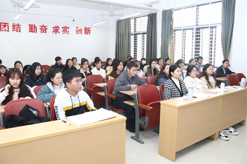 形势与政策课是高校思想政治理论课程体系中的重要组成部分,是对大学生进行思想政治教育的重要阵地。为进一步贯彻落实习近平总书记在学校思想政治理论课教师座谈会上的重要讲话精神和中共中央办公厅、国务院办公厅印发的《关于深化新时代学校思想政治理论课改革创新的若干意见》文件精神,推动威廉希尔官网思政课改革创新,12月9日,校监事会副主席王艳珍在育爱楼206教室为19级酒店管理本科1班学生讲授了一堂精彩纷呈的形势与政策课。