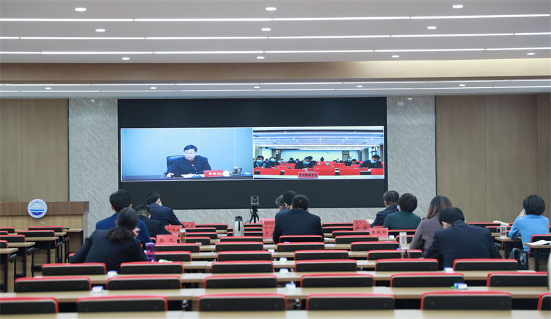 威廉希尔官网在德正楼第一学术报告厅设立分会场,校党委书记李国强等校领导,各疫情防控工作专班负责人参加视频会议。