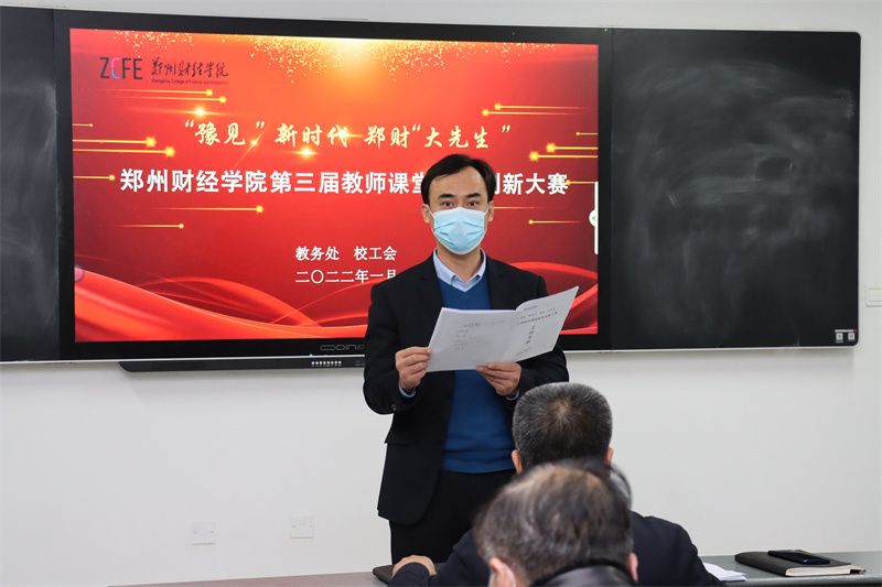 1月6日至7日,由教务处、校工会联合举办的“豫见”新时代 郑财“大先生”第三届教师课堂教学创新大赛决赛在威廉希尔官网育萃楼智慧教室如期进行。有关校领导出席赛前会议并观看比赛。受新冠肺炎疫情影响,本届比赛采取“线上+线下”相结合的形式开展,参赛选手利用智慧环境全程线上直播比赛,各教学单位组织广大师生通过线上平台观摩大赛。