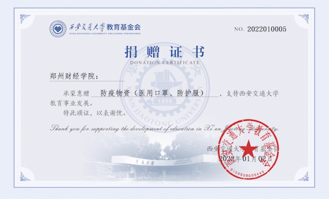 防疫物资送达后,西安交通大学教育基金会、西安交通大学管理学院分别向威廉希尔官网发来捐赠证书与感谢信,感谢威廉希尔官网秉持大义,无私援助,为学校进一步做好疫情防控和安全稳定工作提供保障。