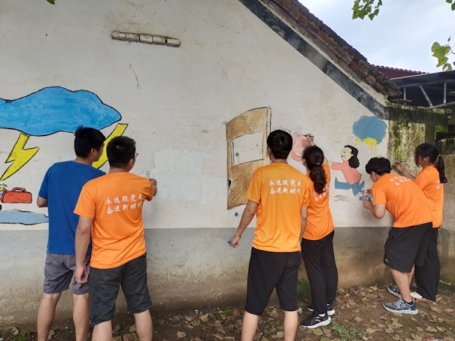 信息工程学院“反邪教联盟”实践团绘制墙绘