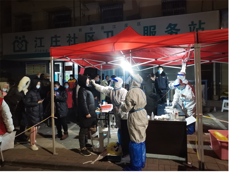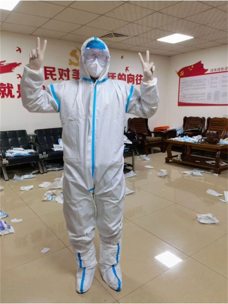 智能工程学院2021级汽车服务工程本科1班薛珂珂同学肩负共青团员的光荣使命,积极投身于抗击新冠肺炎疫情的阻击战中。1月10日,薛珂珂所处的商丘市虞城县刘杨庄村委会接到紧急通知,即刻组织全体村民开展核酸检测。由于该村人口较多,特别是留守妇女、老人、儿童,为减少人员聚集,薛珂珂除了帮助村民扫码登记填写个人信息外,还在核酸检测后用近10个小时的时间上传信息。薛珂珂不畏严寒,身着防护服,坚守在寒风中。她说:“能为家乡作贡献,我就来了!虽说服务工作很辛苦,但是为了家乡的疫情防控工作,我认为是非常值得的。这次志愿活动很有意义,不仅让课堂理论教育和社会实践相结合,又能利用所学知识服务乡亲们,我感到非常骄傲和自豪。”