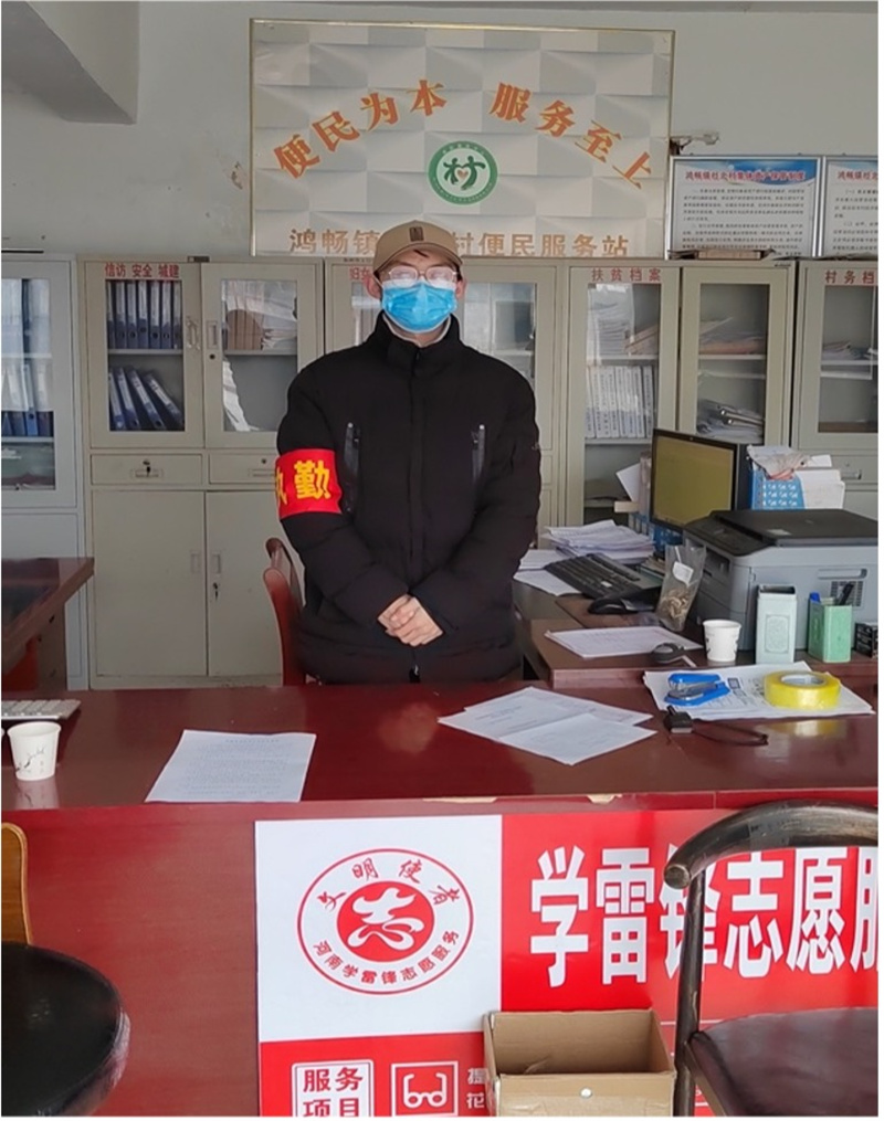 智能工程学院2021级汽车服务工程专升本1班李胜辉同学,以一名学生党员的身份积极参与家乡疫情防控工作,在村口执勤、对来往人员进行信息登记、测量体温、对核酸检测人员进行信息登记。他说:“此次志愿活动让我受益匪浅,对疫情防控工作有了切实的参与感,也让我对基层工作有了不一样的了解。作为一名志愿者,在脚踏实地的奉献中,我体验着这份志愿工作的神圣与高尚。虽然志愿服务是由一些看起来平凡的小事组成,但正是这些平凡琐碎的点滴,发挥着重要的基底作用。在这里我结交了一群和我一样致力于服务社区的小伙伴们,也明白了许多为人处世的道理,锻炼了自己的意志和耐心。”