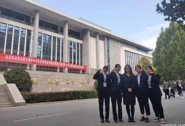 王姿力老师(右四)指导学生参加河南省首届高职高专物流职业能力竞赛