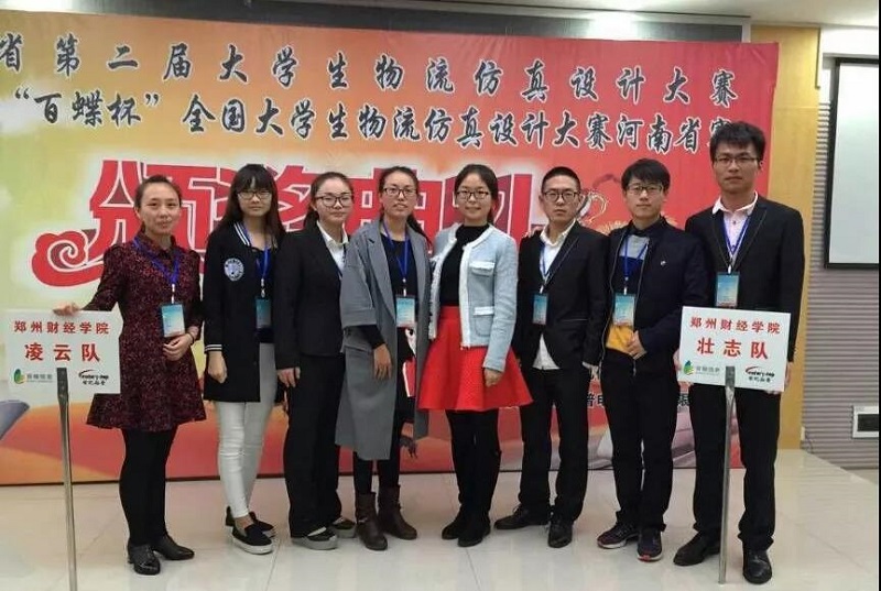 王姿力老师(右四)指导学生参加河南省第二届大学生物流仿真设计大赛