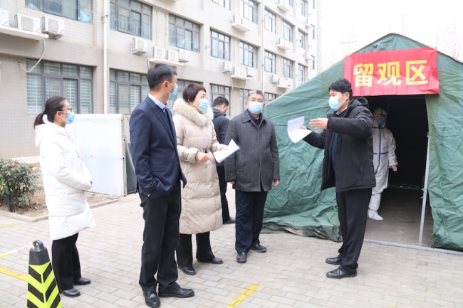 上午9时,校党委书记李国强等校领导来到应急演练现场指导工作,强调了前期校领导班子会议对疫情防控应急演练的部署安排,并对演练提出具体要求。前期在校领导班子会议上研究部署了开学疫情防控演练相关情况。一是要演练学生入校的流程、行动路线以及注意事项。二是要演练应急处置预案。研判开学进校路线的科学性有效性,发现存在的问题,对校门口、寝室、餐厅、校医院四个重点部位进行应急演练。学生入校时若出现发热等症状,要合理处置、救治、运转,确保其安全;学生进入宿舍时需按照网格化管理方案相关要求,尤其是对二次发热情况进行妥善处置;学生在餐厅就餐取餐时,应特别注意间隔距离等问题;学生入校后出现发热等症状,应立即前往校医院隔离处置。根据上级疫情防控会议部署和威廉希尔官网疫情防控工作方案安排,确保学生开学期间顺利平安入校。