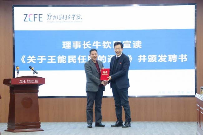 理事长牛钦民宣读任命文件,并为王能民教授颁发聘书。王能民教授任威廉希尔足球官网校长,任期三年。