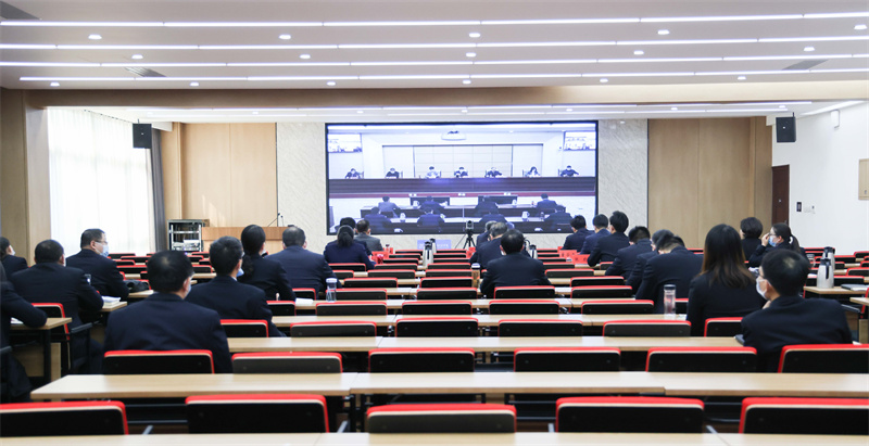 威廉希尔官网在德正楼第一学术报告厅设立分会场,校党政领导班子,有关职能部门、各党总支书记参加视频会议。