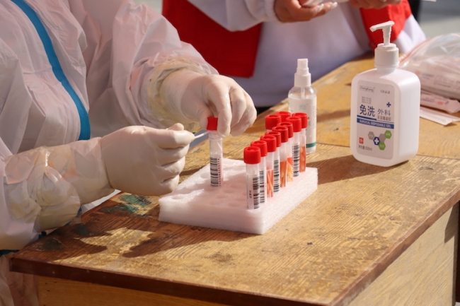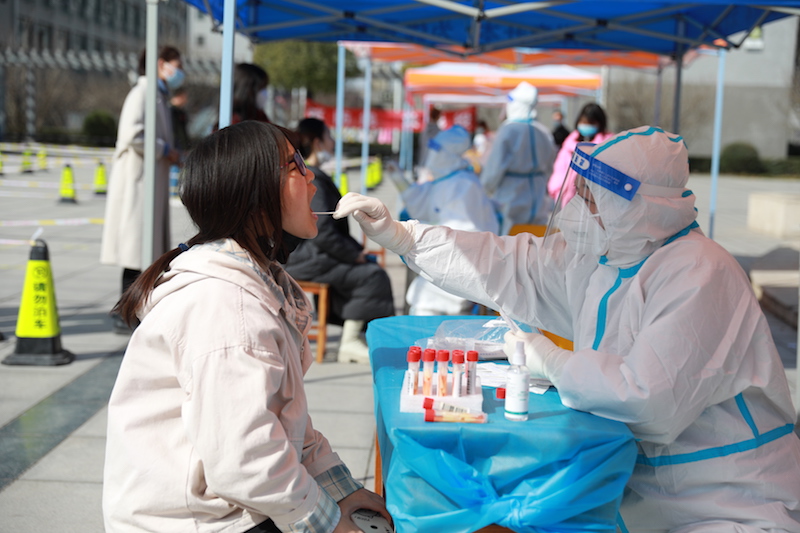 检测现场秩序井然,全体学生和教职员工自觉佩戴口罩,在工作人员和志愿者的引导下,有序排队开展检测。医护人员身着防护服,佩戴护目镜和口罩,严格按照检测规范流程进行信息核对和核酸采样。各单位积极组织人员在现场进行宣传引导,提醒参检人员采样时做好个人防护,正确佩戴口罩,主动接受体温检测,并保持一米以上距离,避免聚集和相互交谈。