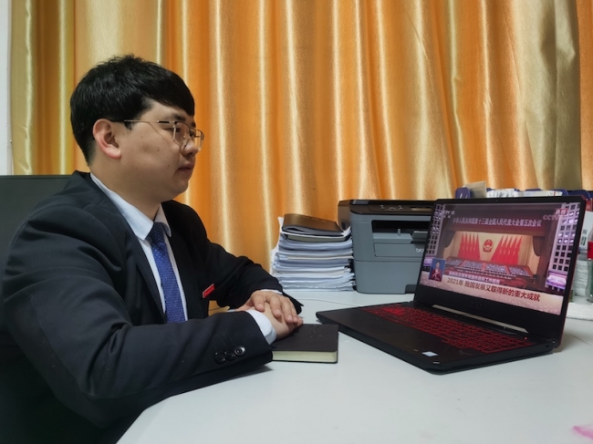 机关一党总支党宣支部丁文娟教师表示,两会工作报告举旗定向、谋篇布局,站位高、接地气,人民关注的、热议的也是两会中讨论的重点,政府报告中也做了重点回应,为做好全年工作指明了方向。作为一名高校计算机专业教师,我关注到了乡村振兴中涉及的新科技和新领域。两会工作报告使我深受鼓舞,我将开拓创新、埋头苦干,充分发挥自身优势,钻研专业技术和教学方法,以踏实的工作、优异的教学业绩来回报国家、社会和学校,以自身的激情和学习态度带动学生为中华民族伟大复兴而努力。