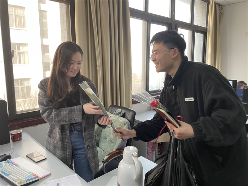 信息工程学院团总支为学院55位女教师送上鲜花,给她们忙碌的工作增添了一份温馨和浪漫,收到鲜花后,老师们脸上都洋溢着幸福的笑容。