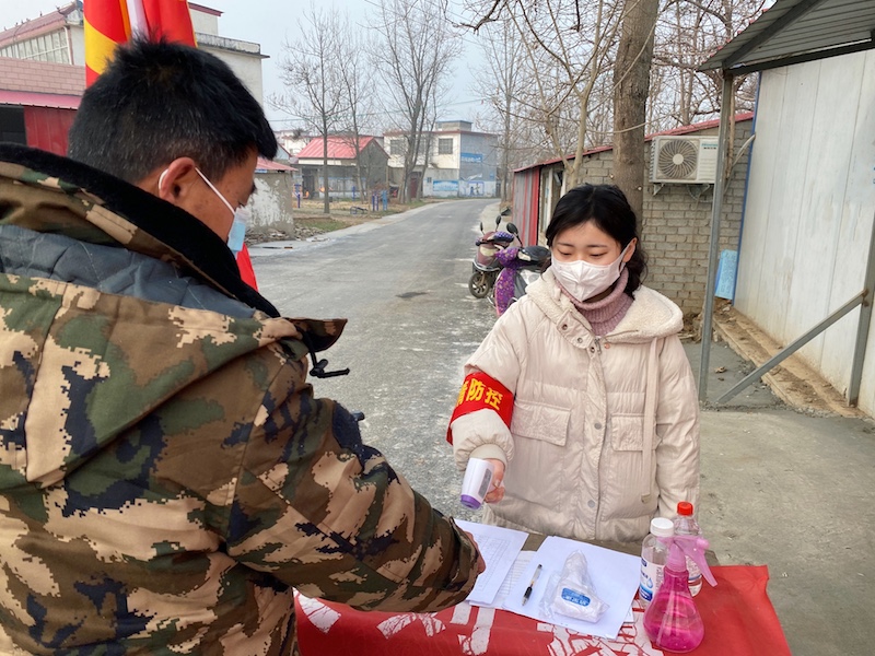 2022年伊始,新冠肺炎疫情卷土重来,陈鹤丹同学冒着寒风,在村口疫情防控卡点执勤,登记来往人员信息,即使是下雪天,路上行人渺渺,她也毫不放松,坚守在岗位上。陈鹤丹还担任村里的信息联系员,负责与上级部门的信息传递及沟通;在全员核酸检测现场,她戴上防护工具不厌其烦地为村民登记信息,冻得手脚冰凉,防护帽上的哈气擦了又擦……