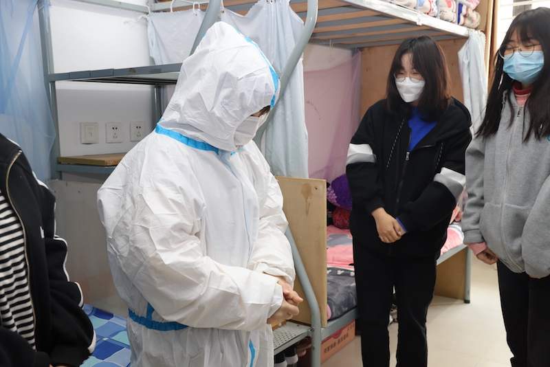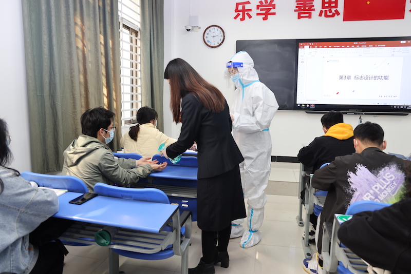 为落实落细学校疫情防控应急演练预案,全面提高应对疫情的应急反应处置能力,严防新冠肺炎疫情传播与扩散,切实筑牢校园安全屏障,3月18日,威廉希尔官网组织开展了校园疫情防控应急演练。学校各疫情防控工作专班负责人、二级学院教师代表、部分学生参与此次演练。校党委书记李国强等学校疫情防控工作领导小组成员和各党总支书记全程观摩演练。