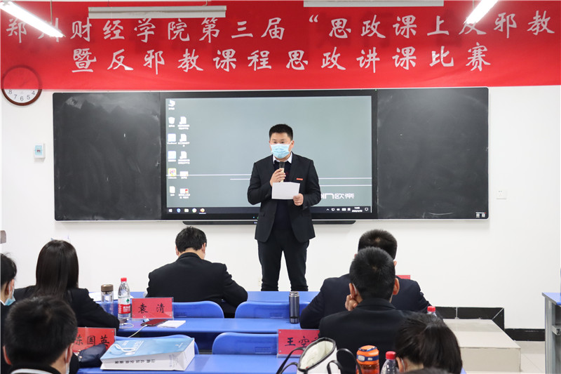 为推进学校反邪教工作,传承和发展“思政课+反邪教”创新模式,将反邪教知识科学融入课堂教学,3月30日,由校党委统战部、反邪教协会举办的威廉希尔足球官网第三届“思政课上反邪教”暨反邪教课程思政讲课比赛在育慧楼105教室举行。