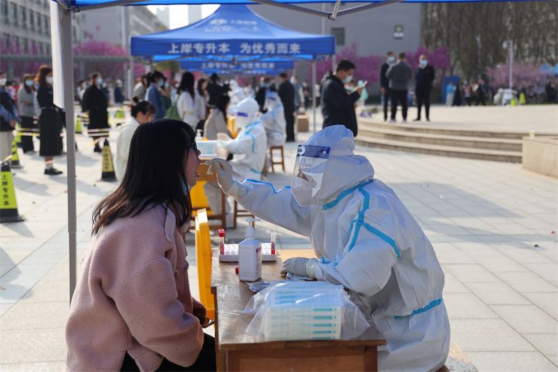 学生正在进行核酸检测