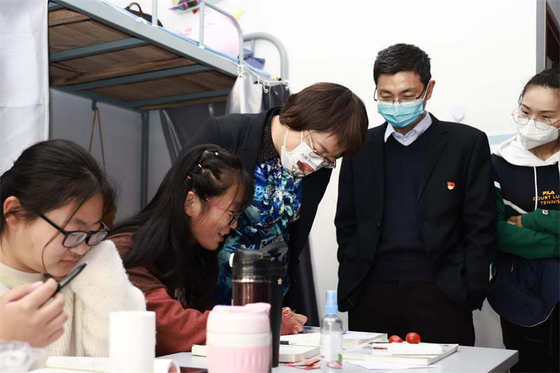 与此同时,各学院班子成员、辅导员纷纷走进学生中间,倾听学生心声,及时解决学生线上学习、封闭管理期间遇到的各项问题。