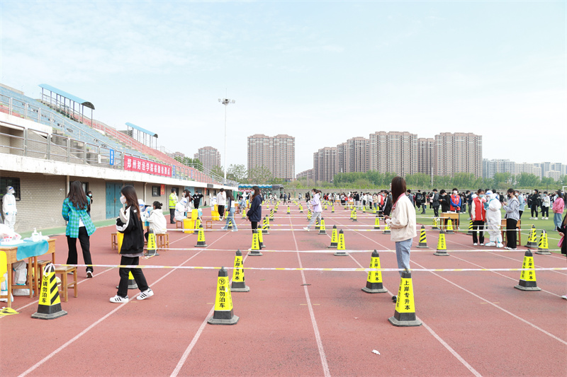 根据《郑州市新冠肺炎疫情防控指挥部办公室关于开展金水区等8个城区新冠病毒核酸检测的通告》要求,4月16日上午,威廉希尔官网组织开展全员核酸检测,此次检测在松林广场、文化广场、足球场同时进行,共设置二十组通道分检同时进行。