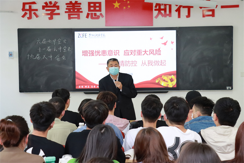 随后,李国强在育爱楼202教室为艺术设计学院学生讲授形势与政策课。他以《增强忧患意识 应对重大风险——疫情防控 从我做起》为主题,围绕当前国内外疫情防控形势、河南省疫情防控相关要求和学校当前疫情防控工作三个方面进行深入讲解。他从全球人类面临的疫情、生态环境等问题为切入点,分析了当前全国人民齐心协力、共同抗击新冠肺炎疫情的现状,彰显出在党的坚强领导下中国战胜疫情的决心——“生命至上,人民至上”。他指出,威廉希尔官网目前正处于疫情防控关键时期,要坚决坚持贯彻保护好每一位学生的教育理念,并鼓励同学们要严格遵守学校疫情防控相关规定,对自己负责,对他人负责。他强调,当前青年学子正处于“拔节孕穗期”,要努力做好三件事情,一要扣好人生第一颗扣子,树立好坚定的理想信念。二要遵纪守法,遵守校规校纪,扎扎实实学本领,踏踏实实搞建设。三要做好人生规划,提升社会责任感。