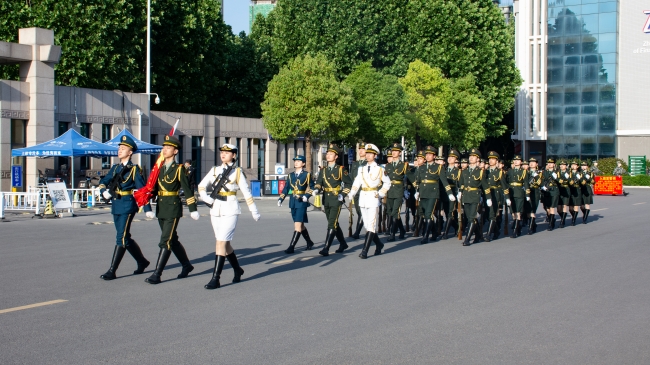 英姿飒爽的国旗护卫队迈着整齐坚定的步伐,以饱满的热情,昂扬的姿态,正步走向升旗台。伴随着庄严的国歌声,入团仪式正式开始。