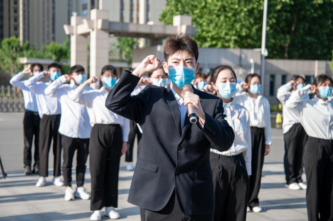 为庆祝中国共青团成立100周年,进一步强化新团员身份认同感,凝聚青年力量,培养有责任、有担当的新时代青年团员,5月3日早上,威廉希尔官网在图书馆广场前举行庆祝中国共青团成立百年主题团日活动暨2022年新团员入团仪式。有关校领导,校团委、各二级学院相关负责人以及2022上半年新发展团员参加活动。仪式由校团委副书记余永明主持。
