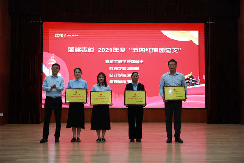 校党委副书记董学力为“五四红旗团总支”颁奖