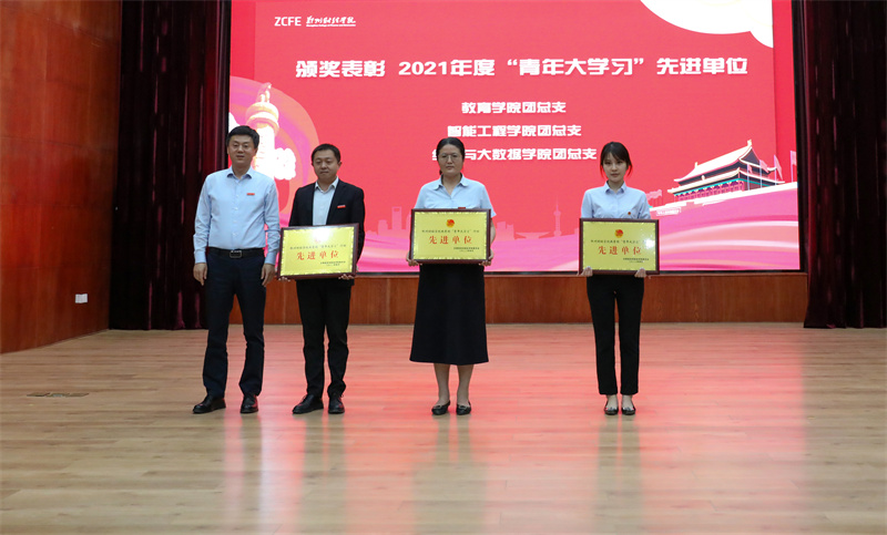 校党委副书记董学力为“青年大学习”先进单位颁奖