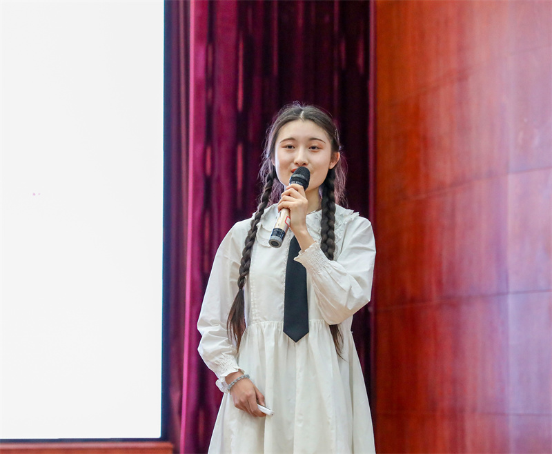 在“微团课”风采展示中,外国语学院孔令雨晴同学以“读英雄情书,感家国情怀”为主题,带领大家从一封封书信中品读到了不同时代的青年故事,深刻感受了千千万万个中华儿女“此生无悔入华夏,来生还在种花家”的“心语心愿”。