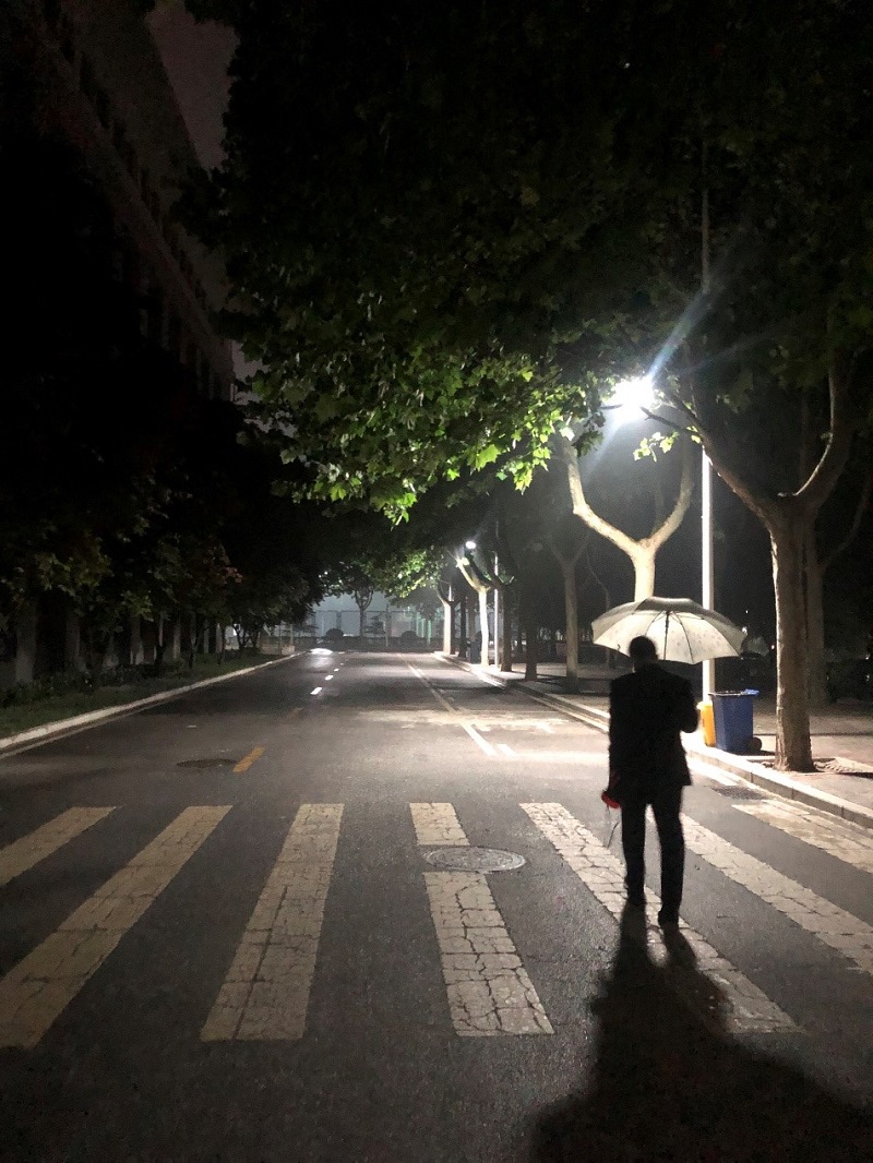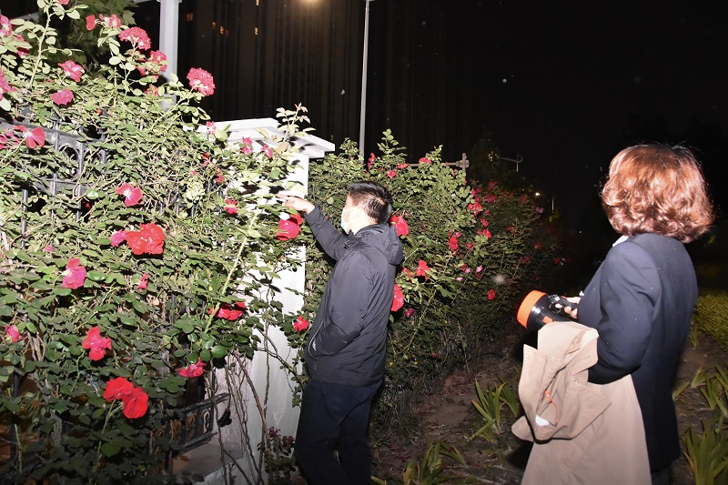 晚上10点,我们小组整装出发,在负责区域重点检查围墙内外、宿舍楼下、消防用电、保安值班等情况。巡防时,天突然下起雨,理事长牛钦民和监事会主席李庆阳两位领导沿路为值班人员送雨伞,叮嘱我们注意安全。
