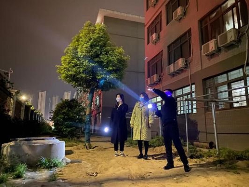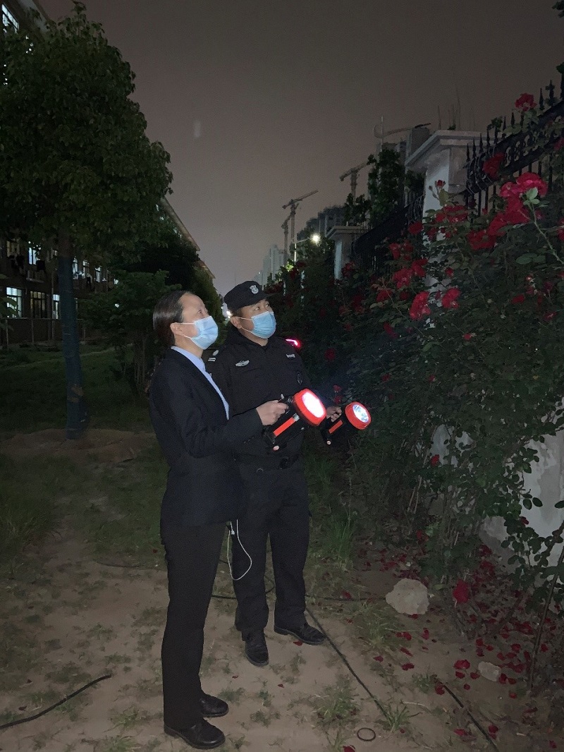 疫情就是命令,防控就是责任。5月9日凌晨2点至4点,这个时段4个值班小组的12个人迅速集合。夜晚的校园显得格外安宁,我和保卫处郑老师、科研处张老师沿着德馨楼至教1、教3的校园围墙仔细排查。寒冷的夜风直往脖子里灌,但想到2万多名师生的健康,我们三个人丝毫没有感觉到凉意。