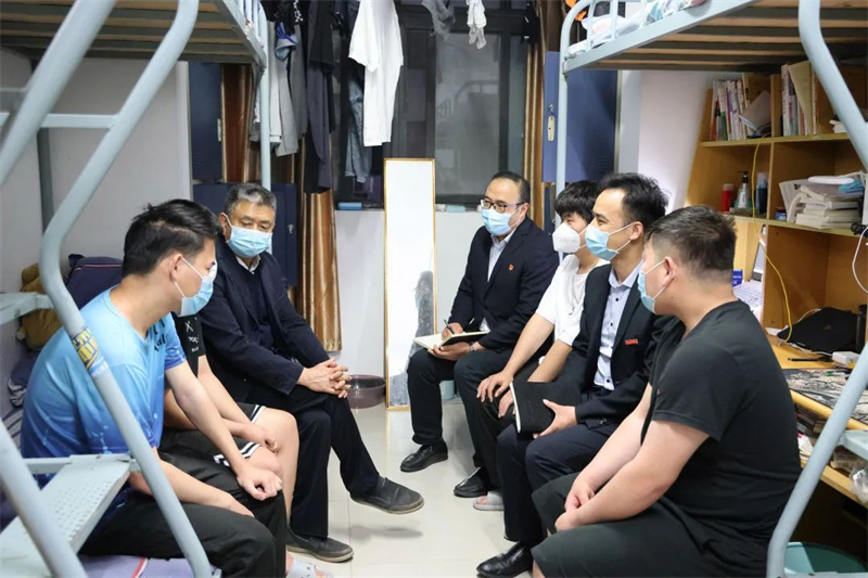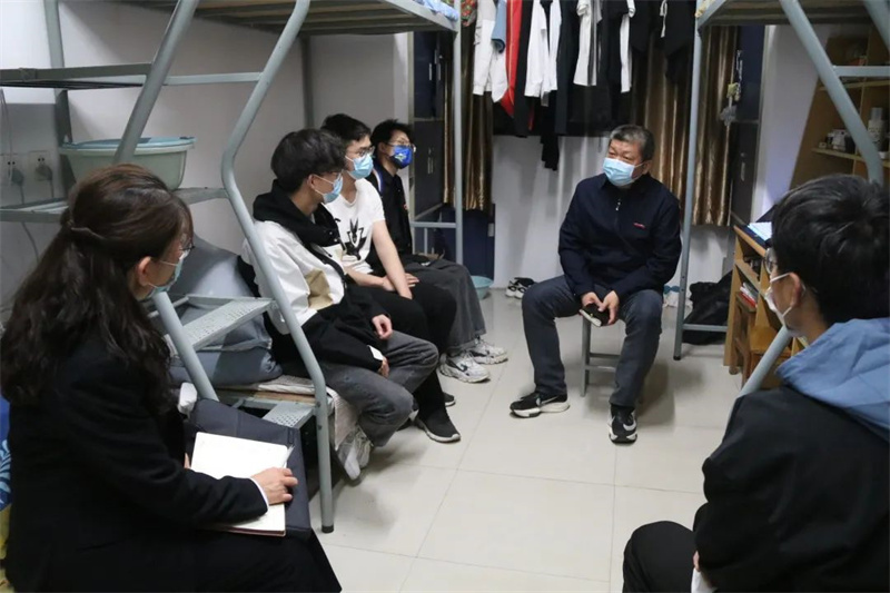封闭管理下生活上有什么困难?上网课的网速怎样?卡顿情况多不多?宿舍学习氛围如何?食堂饭菜怎么样?有没有坚持锻炼身体?气温多变要及时增添衣服保重身体……一句句、一声声,言语谆谆、贴心关怀,瞬间拉近了心与心的距离。自5月8日以来,校领导班子全体成员连续走进宿舍,与学生围坐在一起,耐心解释学校的疫情防控举措,了解大家当前的学习、生活及心理状态,为大家保持定力、安心学习加油打气。同学们感受到校领导体贴的关心,纷纷放下顾虑,畅所欲言。