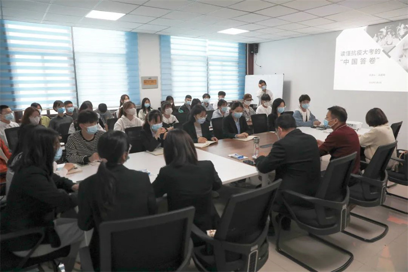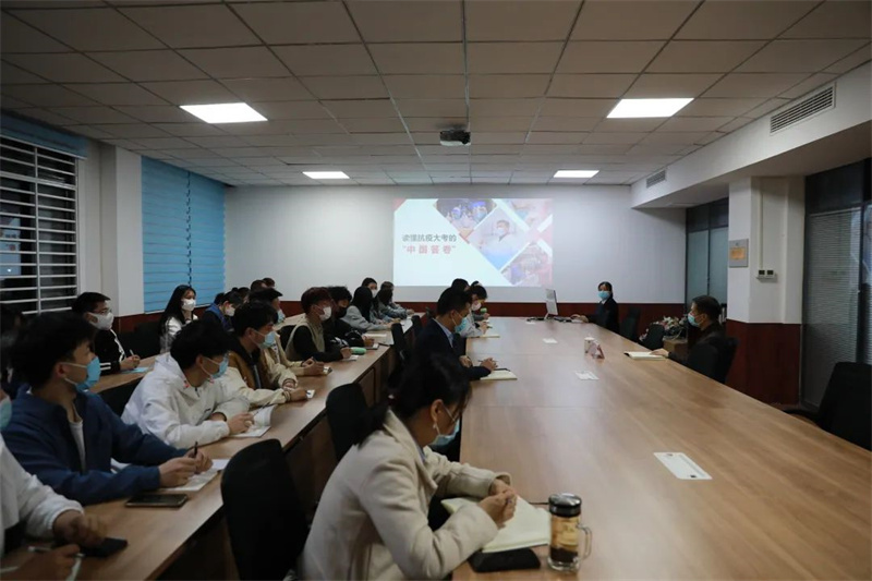 在宿舍里、在会议室、在师生座谈会上,校领导在为广大同学解惑释困的同时,把各行各业勇毅坚守的抗疫力量和郑财师生携手同心共同抗疫的故事,化作生动的思政教材为师生讲授形势与政策课、思政教育课,鼓励大家用科学精神和科技力量增强自身“免疫力”,共同筑牢校园疫情防控的“铜墙铁壁”。