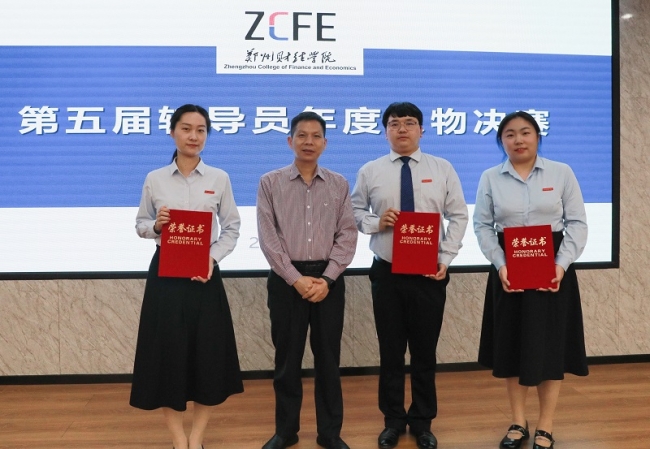 经过激烈角逐,依据评委评分结果和学生评价(评选总分为100分,个人展示占60%,3C考核占20%,学生评价占20%),智能工程学院王浩然、管理学院李爽、信息工程学院许潇被评为“第五届威廉希尔足球官网辅导员年度人物”,会计学院程亚薇等六名辅导员获得入围奖,校领导依次为获奖教师颁奖。