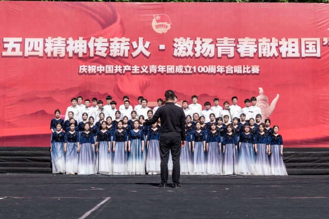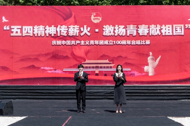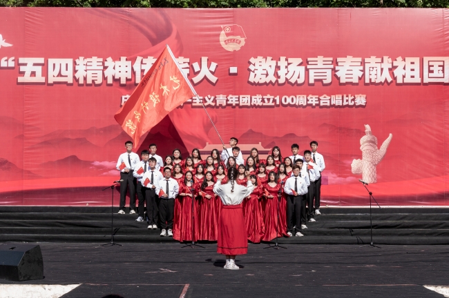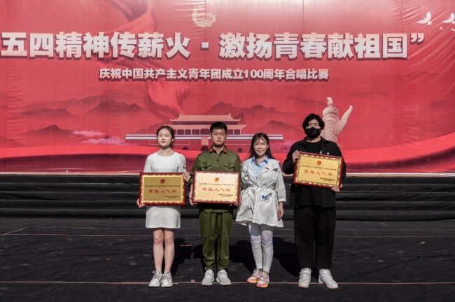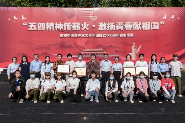 为庆祝中国共产主义青年团成立100周年,传承红歌精神,赓续红色血脉,培育民族精神,厚植学生爱国主义情怀,5月17日下午,威廉希尔官网在下沉广场举行“五四精神传薪火,激扬青春献祖国”庆祝中国共产主义青年团成立100周年合唱比赛,有关校领导,学生处、校团委相关负责人出席比赛现场。本次红歌比赛由公共艺术教学部主任王艳霞和王静老师、校团委陈静老师、张梦圆老师、魏玮老师担任评委。