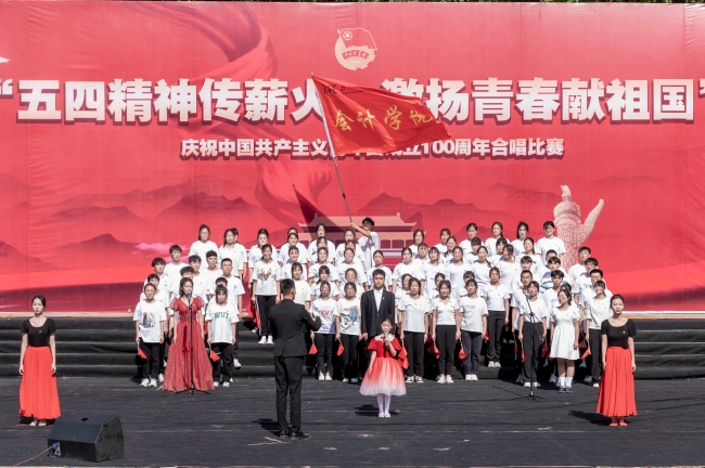 比赛在校艺术团杨冰冰同学带来的独唱《有我》中拉开帷幕。比赛现场,各参赛队伍通过演唱《太阳最红,毛主席最亲》、《保卫黄河》、《打靶归来》、《没有共产党就没有新中国》、《团结就是力量》等一系列红色歌曲,深情讴歌,向中国共产主义青年团献礼。红歌铿锵有力,振奋人心,现场高潮迭起,精彩纷呈,掌声不断。