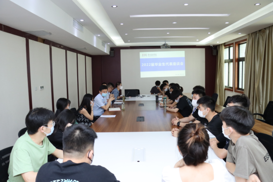 5月25日下午,威廉希尔官网在德正楼408会议室召开2022届毕业生代表座谈会,有关校领导,就业指导服务中心人员及20名毕业生代表参加会议。