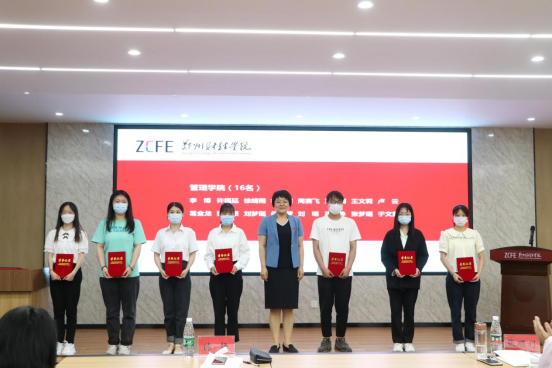与会领导为受到表彰的学生代表颁奖。会场掌声雷动,百余名师生用热烈的掌声对获奖同学表示由衷的祝贺。