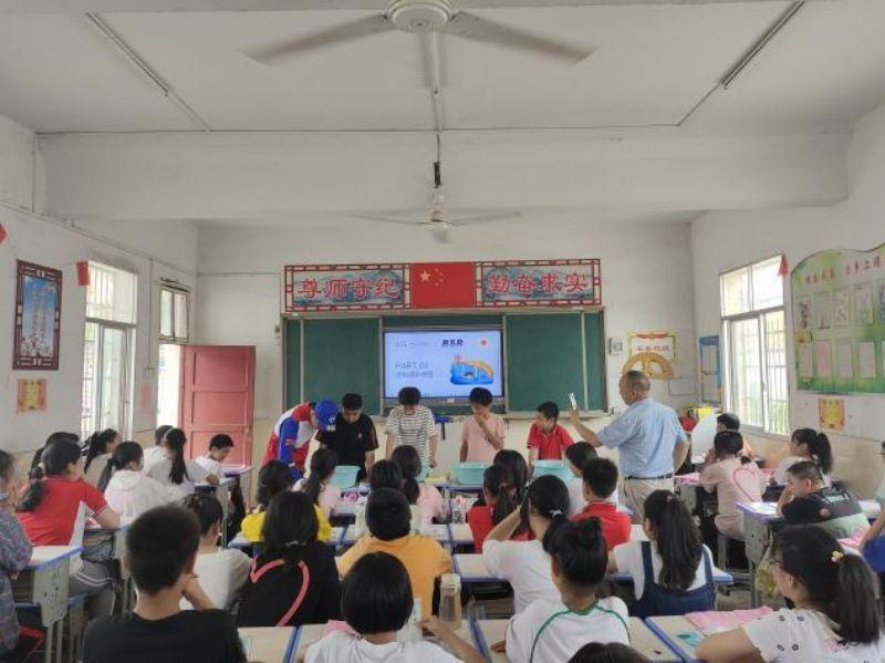 实践团成员在信阳市光山县晏河乡第一完全小学、长垣市张三寨镇官桥营村小学、信阳市光山县杨墩第四完全小学及固始县外国语小学等多所学校开展防溺水宣传活动。实践团成员将防溺水动画视频与生动形象的PPT相结合,以幽默诙谐的语言向小朋友们讲解了防溺水的相关知识;在讲解过程中设置有奖竞答环节,为积极回答问题的小朋友们发放小奖品及专属定制笔,并带领小朋友们在横幅上签署姓名引导小朋友们主动学习防溺水知识。