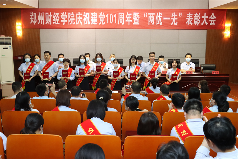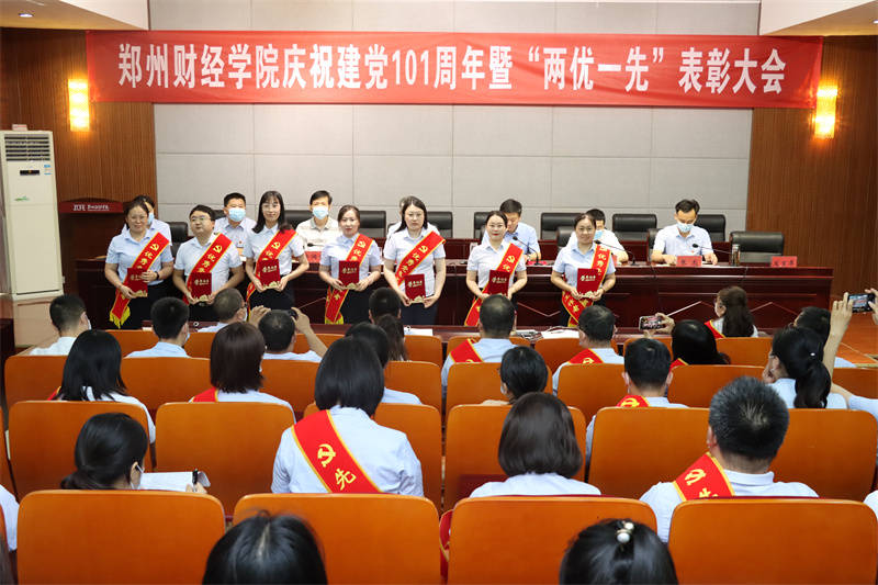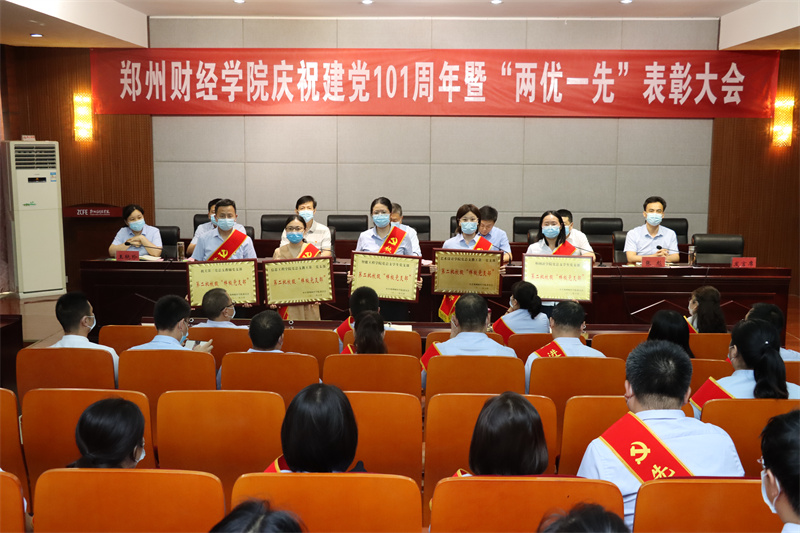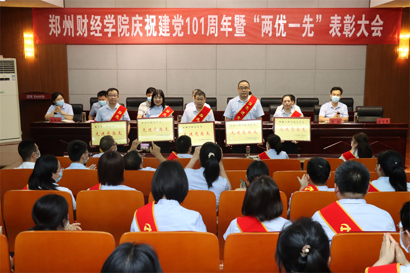 副校长卢文邦宣读《中共河南省委教育工委关于公布第二批全省高校省级样板党支部评审结果的通知》《中共郑州财经学院委员会关于公布第二批校级样板党支部的通知》。