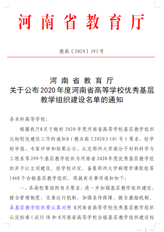 思想道德修养与法律基础教研室(课程类)获河南省高等学校优秀基层教学组织