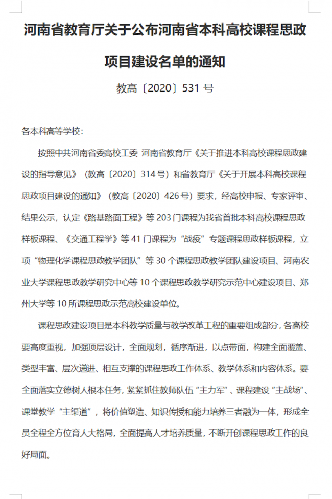 《管理会计学》、《广告学概论》等三门课程被认定为河南省本科高校课程思政样板课程