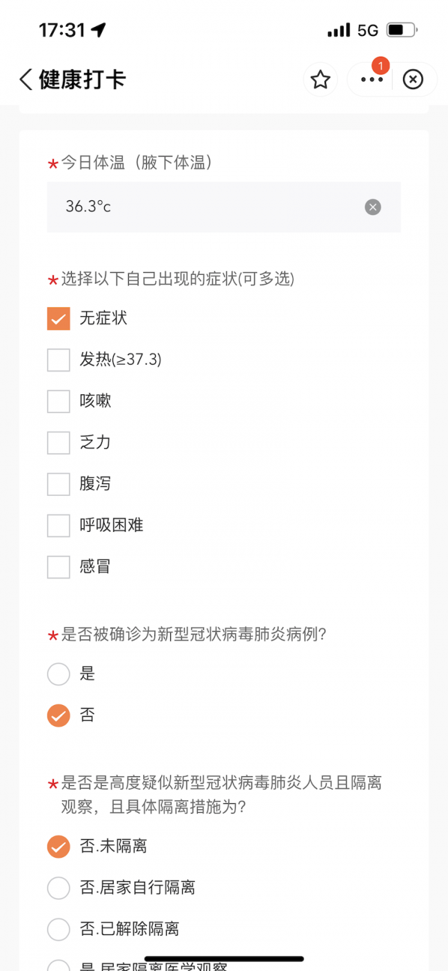 疫情防控期间学生健康信息上报