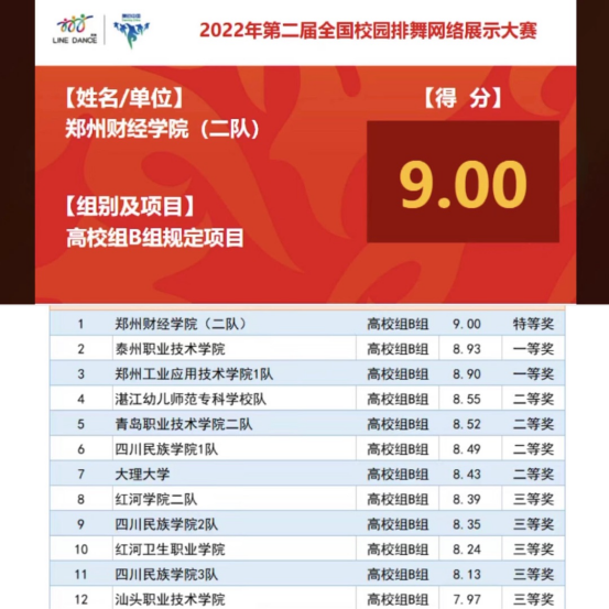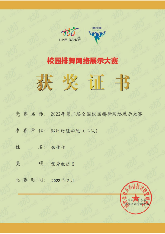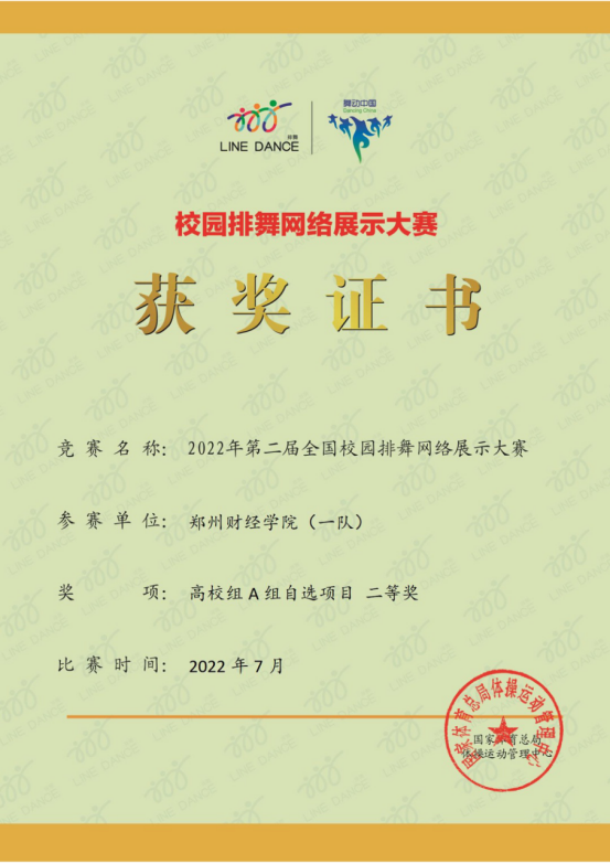 7月1日至3日,由国家体育总局体操运动管理中心、中国蹦床与技巧协会主办的2022年第二届全国校园排舞网络展示大赛正式开赛。在苑宁宁、张佳佳、刘泉三位老师的带领下,威廉希尔官网荣获高校组B组规定项目特等奖,高校组A组自选项目二等奖,三位老师均获得“优秀教练员”荣誉称号。