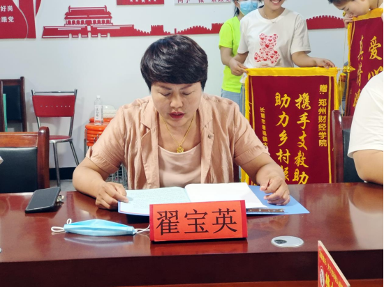 丁青山简要介绍了学院的专业设置以及“蒲公英”暑期支教活动的开展情况,并对长葛市增福镇大户陈社区、校工会对教育学院支教活动的大力支持和关心指导表示衷心感谢。他表示,教育学院将继续发挥高校教育职能,充分利用专业优势,积极组织广大学生开展暑期社会实践、“返家乡”社会实践等志愿服务活动,以实际行动喜迎党的二十大胜利召开,为乡村振兴贡献青春力量。