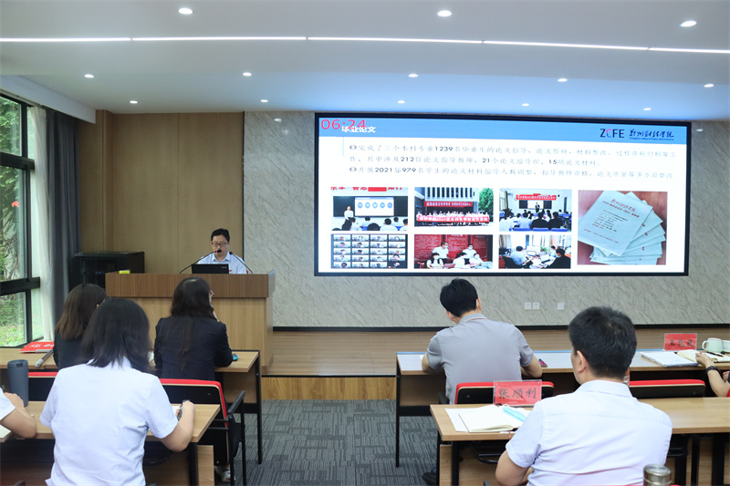 会上,各教学单位汇报人通过PPT形式对本学年常规教学及教学评建工作进行汇报,分别围绕教学管理基础、教学质量控制、教学考试管理、教学管理效果等方面进行汇报。