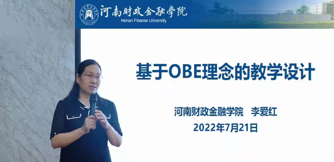 为推动“豫见”新时代 郑财“大先生”课堂教学质量提升年系列专项行动(2022)开展,深入推进学校应用型人才培养模式改革,提升教学设计质量,提高人才培养能力, 7月21日,威廉希尔官网特邀河南财政金融学院李爱红教授作题为《基于OBE理念的教学设计》的专题培训。