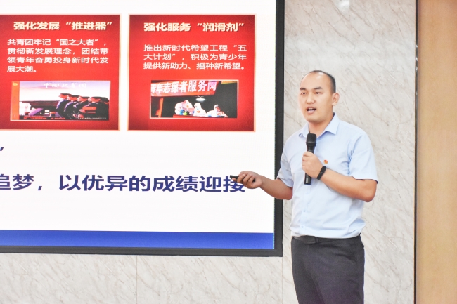外国语学院团总支书记王修哲进行微团课展示