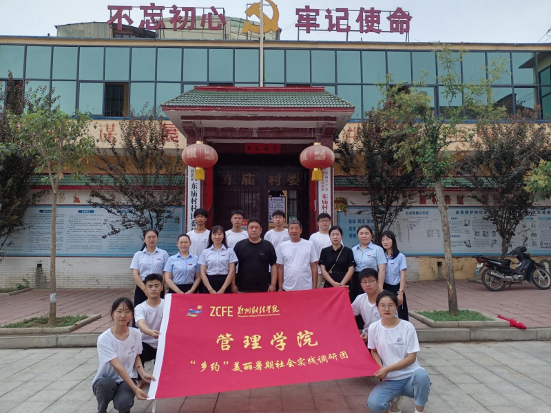 东庙村党支部委员与“乡约美丽”暑期社会实践团指导老师、队员合影