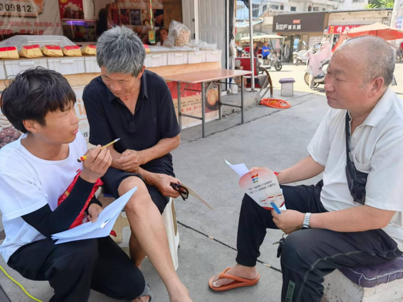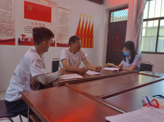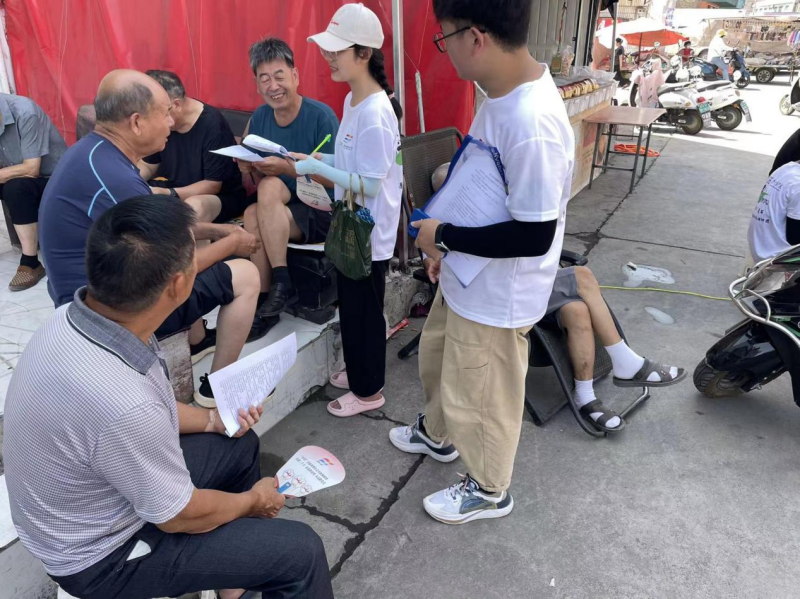 “乡约美丽”暑期社会实践调研团成员协助村民填写调研问卷