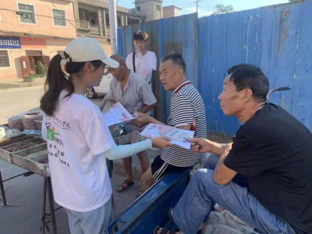 “乡约美丽”暑期社会实践调研团成员发放宣传单页讲解相关政策