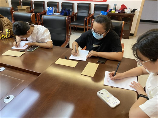 7月5日上午,金融学院“赤子之心”传中华之志暑期社会实践团在开封市龙亭区大兴街道办事处举办“一封家书寄亲情”活动。社区居民来到活动点位领取信纸、信封,把想对家人说的话写在纸上,一句句表达真挚问候的话语,一封封传递温馨的信笺,写家书的过程,也是一次自我认识和教育,焕发出爱父母、爱家庭等美好情感的过程。